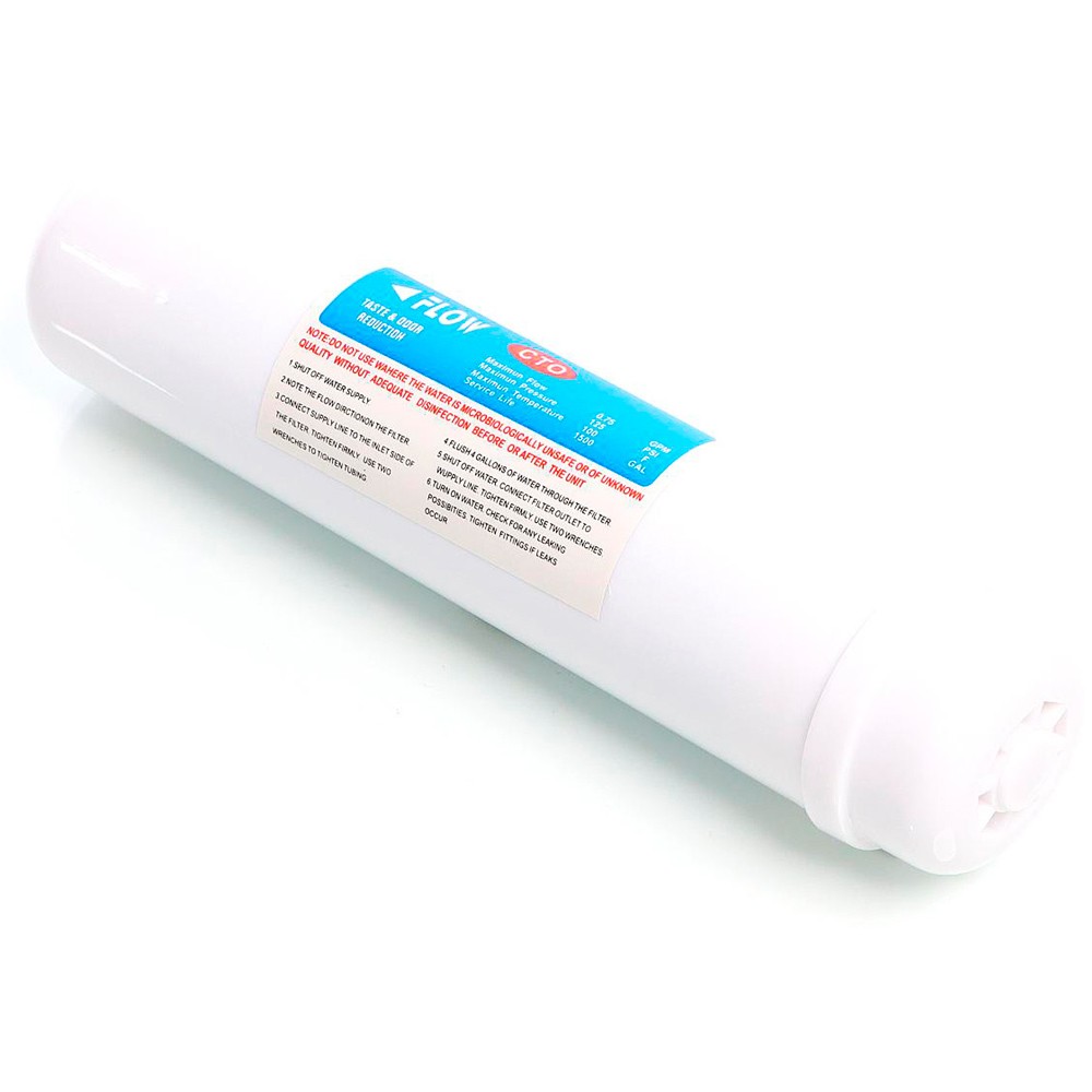 Hecho de carbón activado granular de alta calidad que elimina cloro, olores, sabores, fenol, benceno y contaminantes orgánicos. Equipado con malla de polipropileno para evitar la salida de los granos de carbón. Mejora el sabor del agua notablemente.