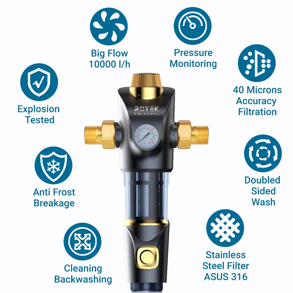 Pre Filtro de Agua con Manómetro Frontal | Alta Tecnología y Autolimpieza | 8.000 L/H