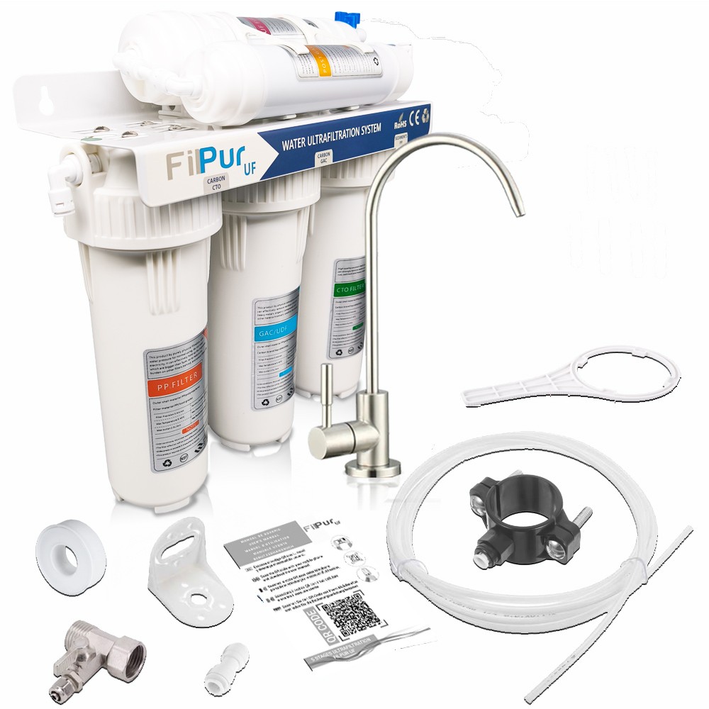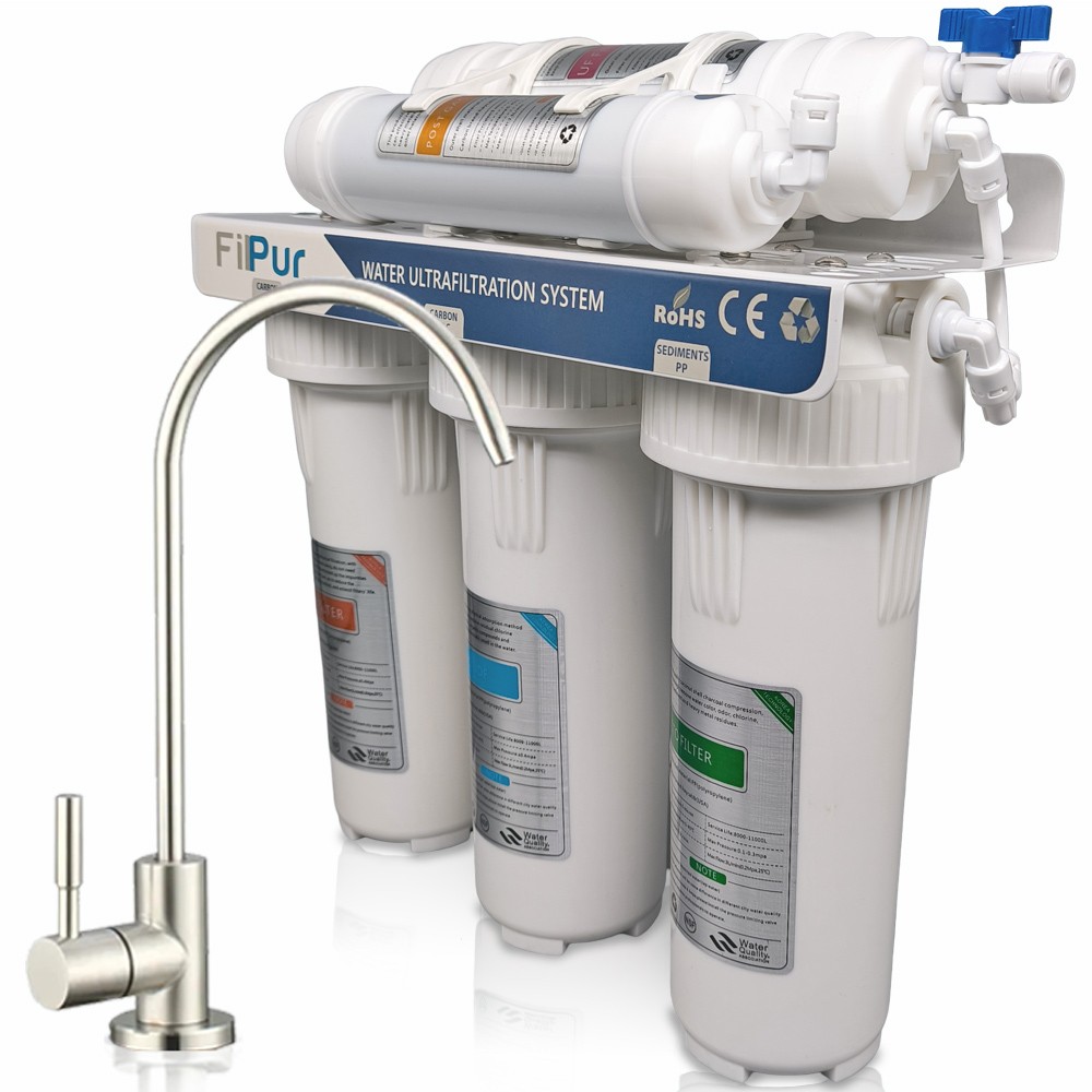 Disfruta de agua pura en casa con el Sistema de Filtrado de Agua por Ultrafiltración UF de 5 etapas. Un sistema compacto y eficiente que no desperdicia agua y no necesita electricidad. Perfecto para instalar bajo fregadera o sobre encimera.