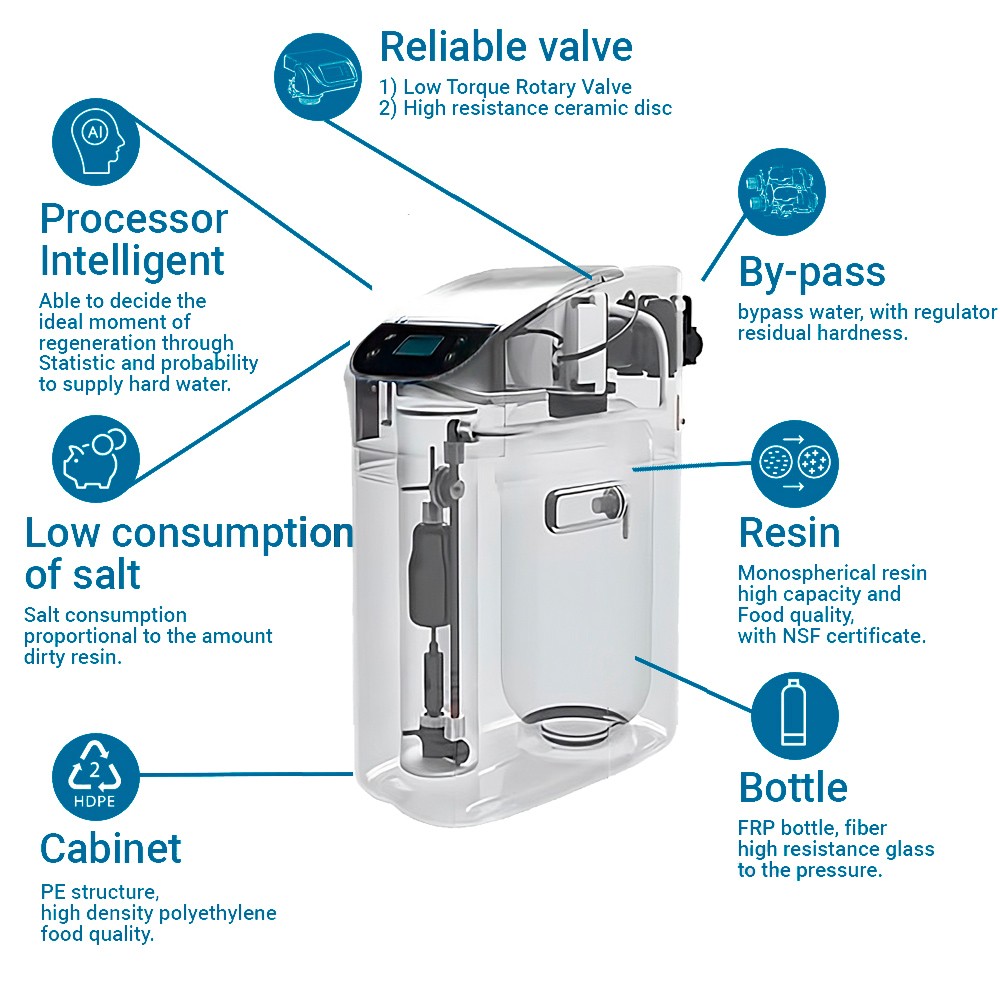 Descalcificador Doméstico compacto SOFTPUR9 | Agua sin Cal para pisos