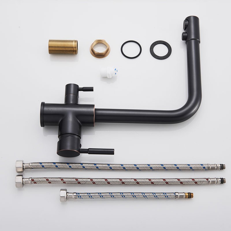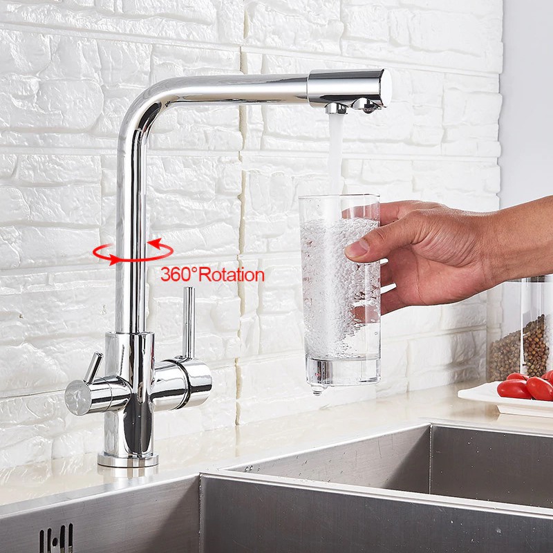 El grifo Venus es la solución perfecta si no desea instalar un grifo adicional para su ósmosis inversa . Podrá utilizar el agua normal ( fría y caliente ) y el agua filtrada por la osmosis con el mismo grifo. Los conductos están separados individualmente de manera que no es posible mezclar el agua filtrada con el agua de red normal.