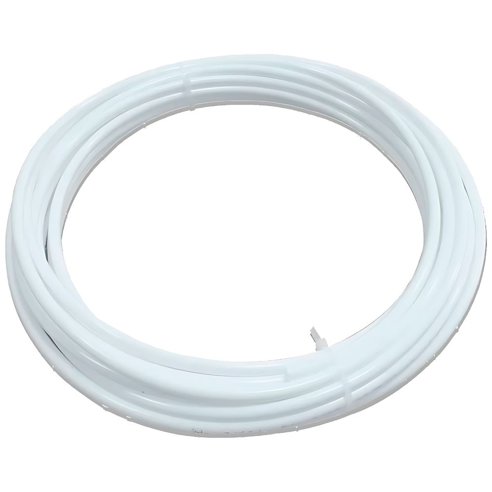 Tubo polietileno 1/4" (10 metros) – Grado alimenticio certificado NSF/ROHS para sistemas de ósmosis inversa, purificación de agua, máquinas de hielo y café. Resistente a presión (120 PSI), temperatura (70-150°F) y agrietamiento. Compatible con conexiones rápidas PureSec y racores de compresión. Color blanco.