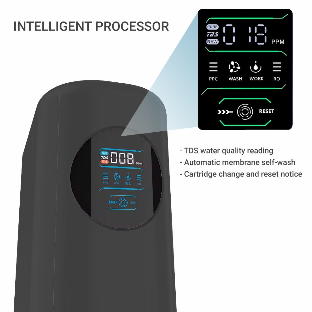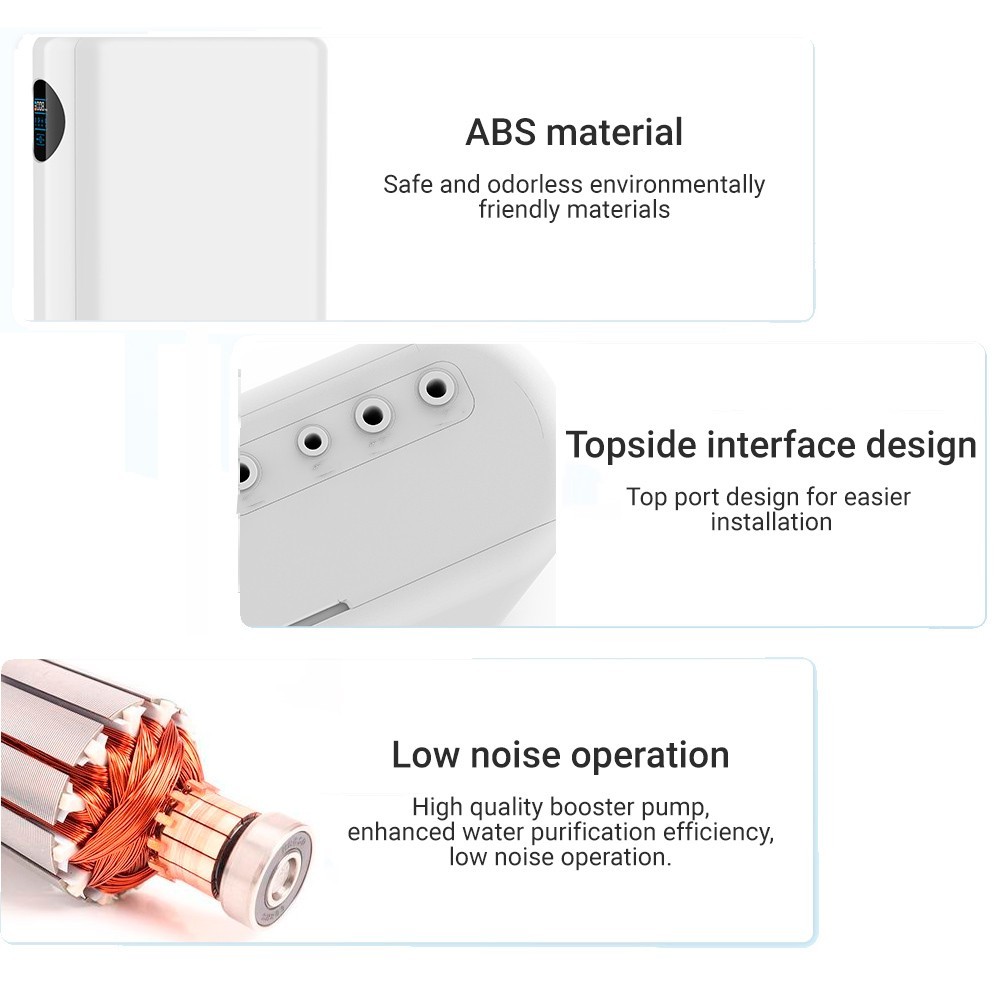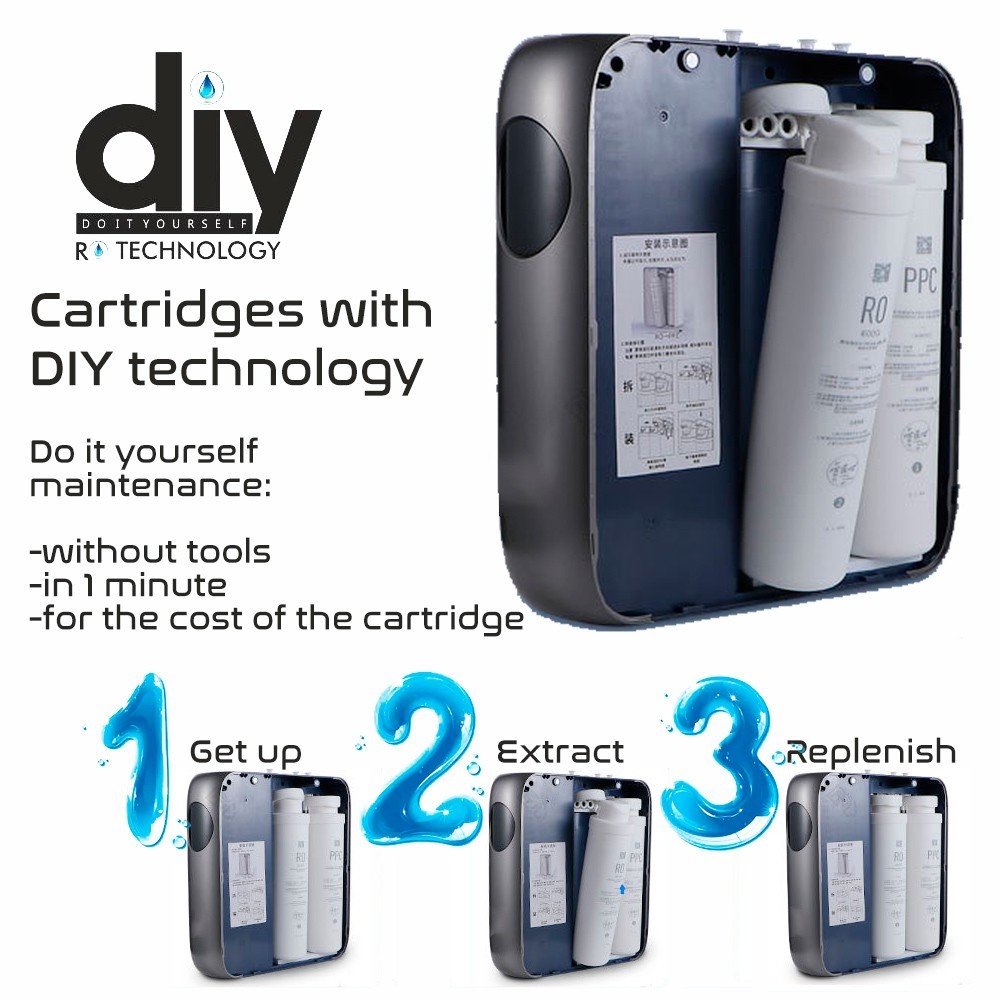 Comprado para reemplazar un filtro de osmosis de vieja generación. Ocupa muy poco espacio bajo el fregadero y es facil de instalar y no requiere configuración inicial. No se tiene que ser ningun experto para instalación.