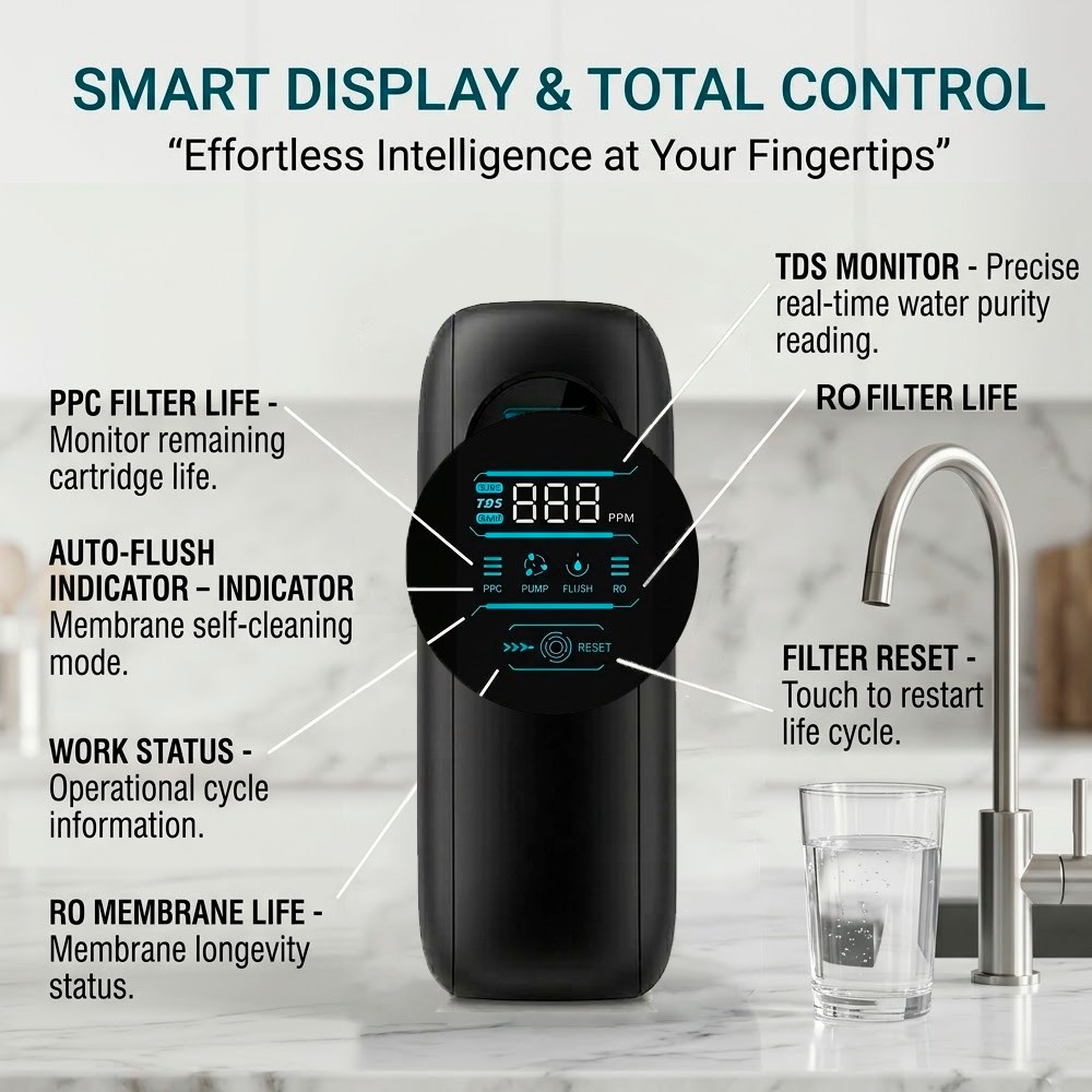 El sistema de ósmosis más rápido y compacto del mercado. Diseñado para hogares modernos que valoran el espacio y la instantaneidad.
