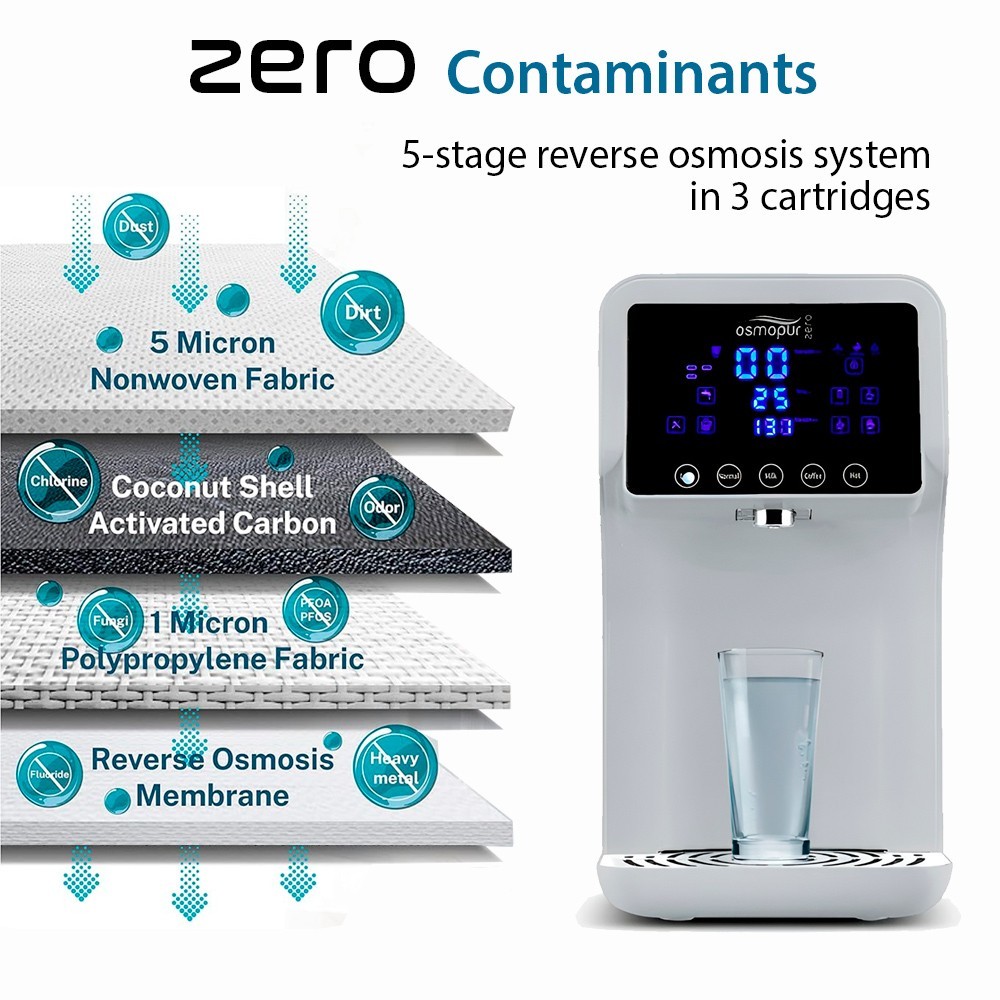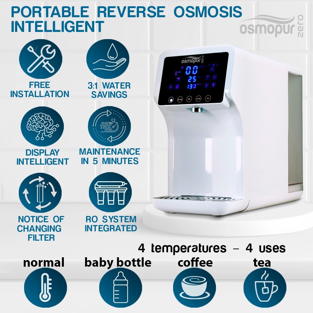 Osmopur ZERO - Dispensador de Agua Portátil con Ósmosis Inversa, 4 Temperaturas, Sin Instalación