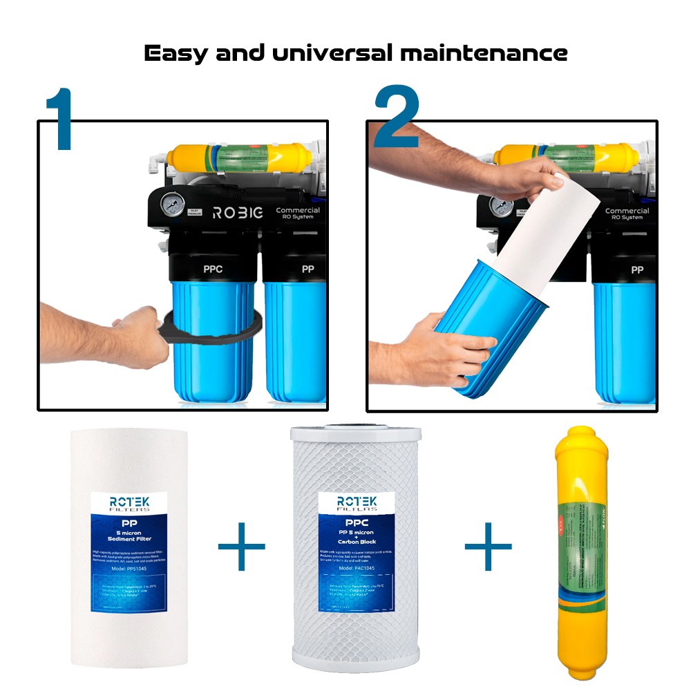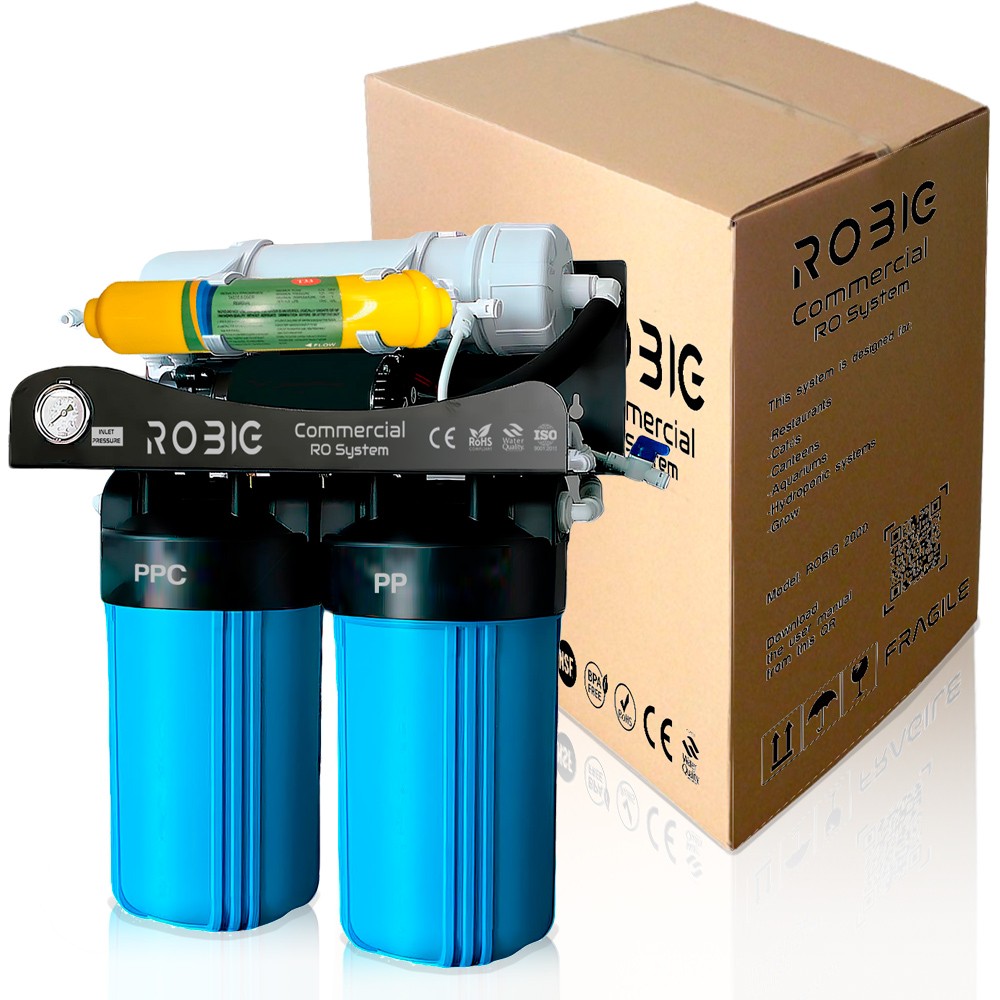 ROBIG Coffee 600GPD es un sistema de ósmosis inversa profesional diseñado para cafeterías, bares y restaurantes situados en zonas con aguas duras (250–1500 mg/L de TDS). Proporciona un agua con el equilibrio mineral perfecto para obtener el mejor café espresso profesional.