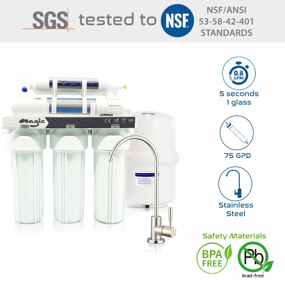Sistema de Ósmosis Inversa MAGIC 75GPD con Certificado NSF – 5 Etapas de Filtración